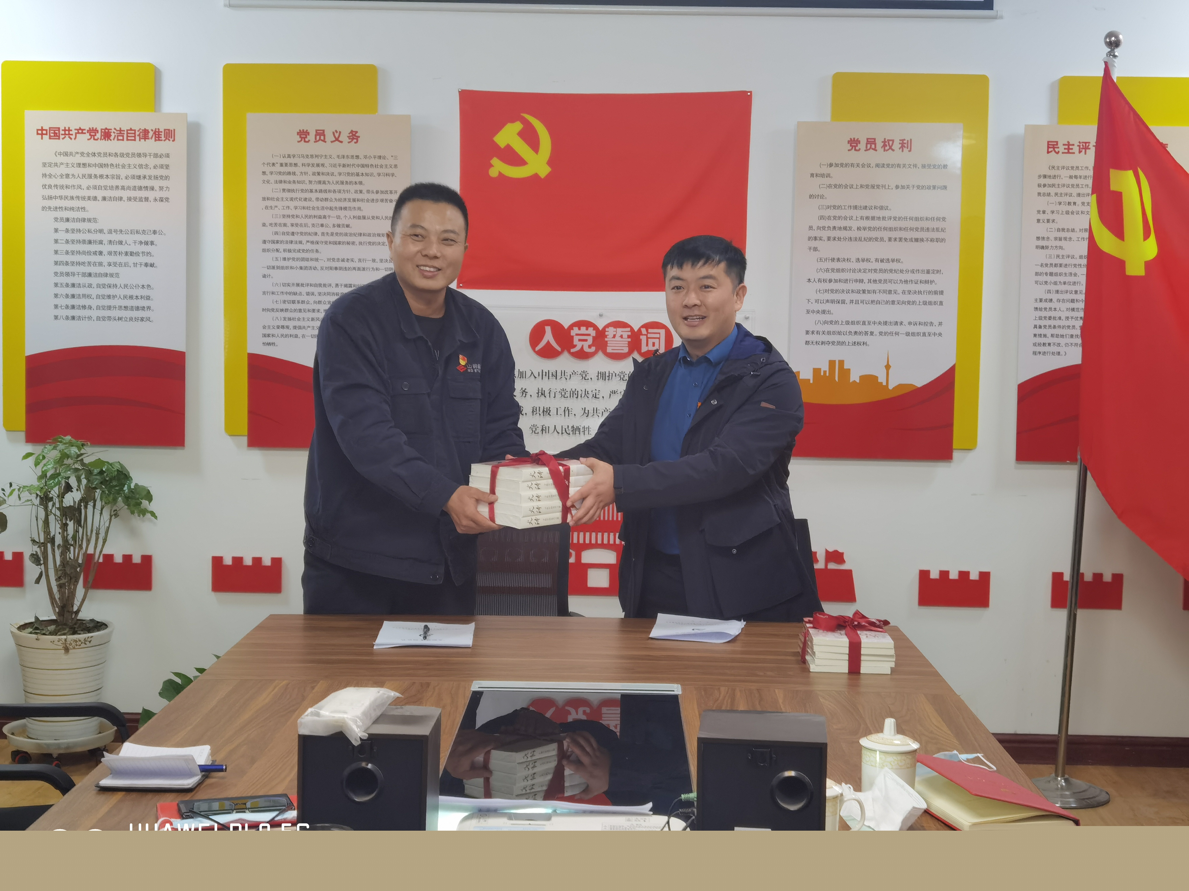 會上,雙方相互介紹公司及支部黨建基本情況,并結(jié)合雙方生產(chǎn)業(yè)務(wù)探討黨建引領(lǐng)下一步的高質(zhì)量發(fā)展合作方案,同時簽訂支部結(jié)對共建協(xié)議。濟南天業(yè)黨支部書記周廣宇同志代表公司向中共濟鋼集團環(huán)保材料采礦車間支部贈送黨史書籍。隨后傳達學習習近平總書記在深入推動黃河流域生態(tài)保護和高質(zhì)量發(fā)展座談會上的重要講話精神和視察山東重要指示要求,強調(diào)“咬定目標、腳踏實地、埋頭苦干、久久為功,為黃河永遠造福中華民族而不懈奮斗”。大家就學習內(nèi)容進行了交流研討,一致認為,習近平總書記的重要講話為黃河流域堅定不移走生態(tài)優(yōu)先、綠色發(fā)展的現(xiàn)代化道路指明了前進方向。習近平總書記這次視察再次體現(xiàn)了黨中央和總書記對齊魯大地和山東人民的深厚關(guān)愛。總書記的重要指示及要求進一步明確了山東在黃河國家戰(zhàn)略中的責任擔當。