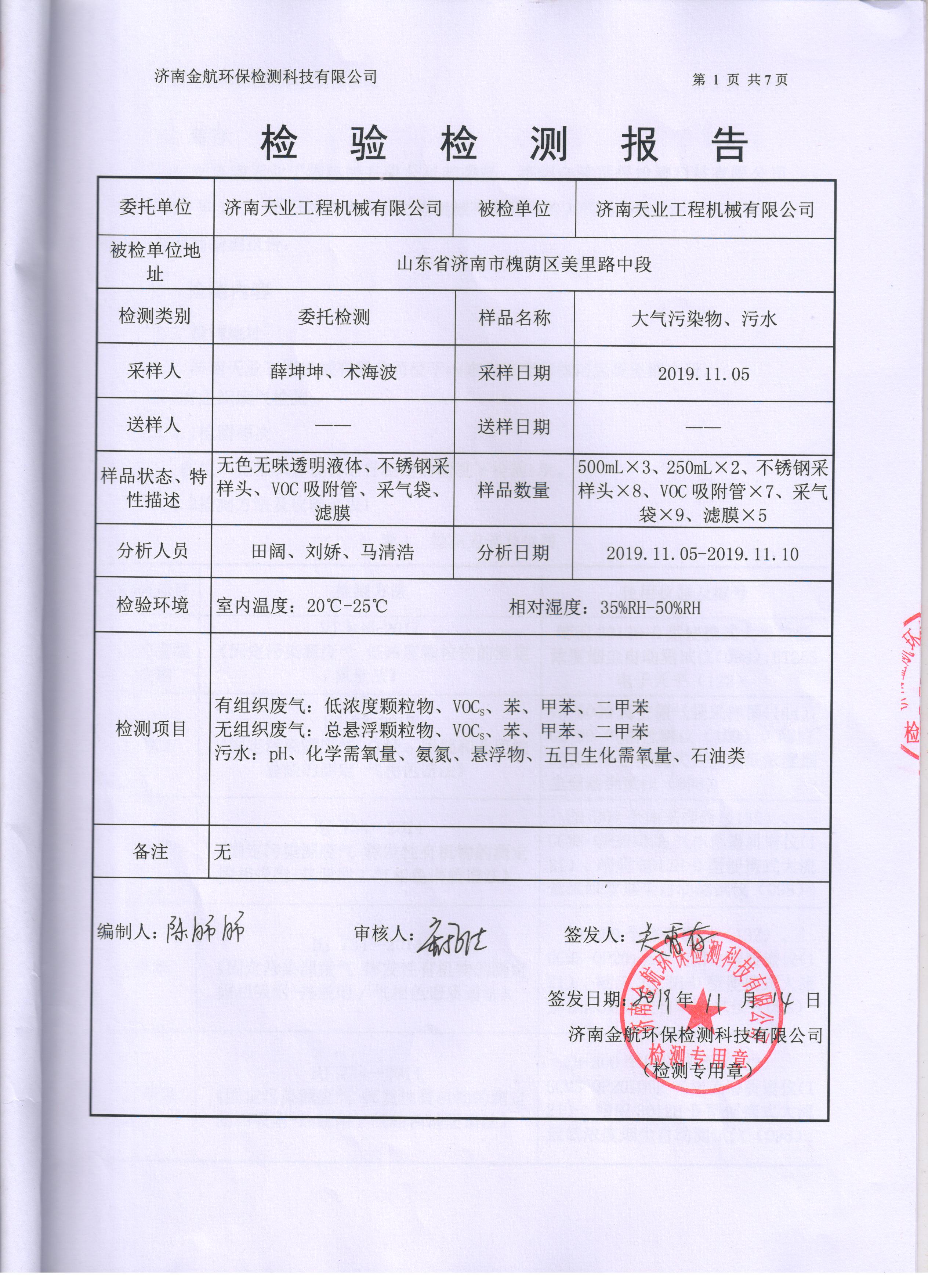 濟(jì)南天業(yè)工程機(jī)械有限公司檢驗(yàn)檢測(cè)報(bào)告公示